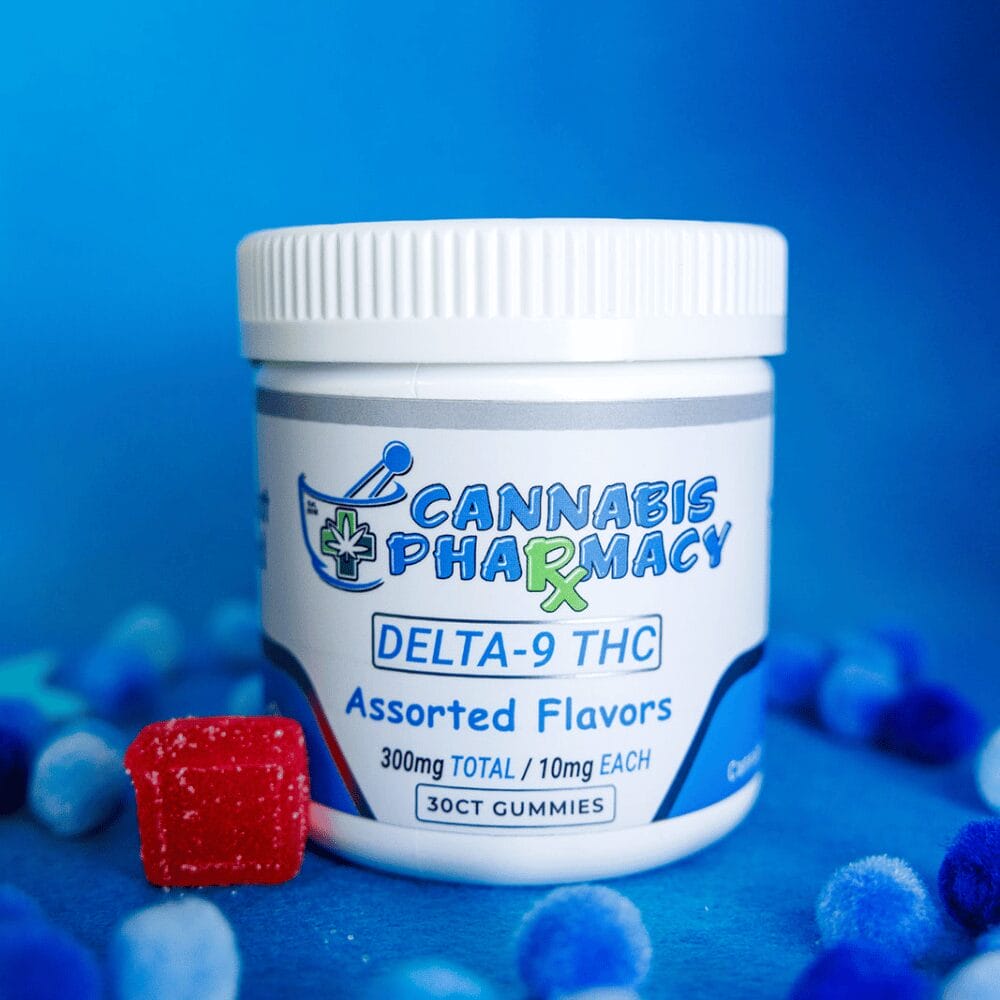 Cannabis Pharmacy THC Gummies – 30-count with 10mg Delta 9 THC each. Assorted flavors. Premium quality, long-lasting relief. Shop these THC edibles online now.