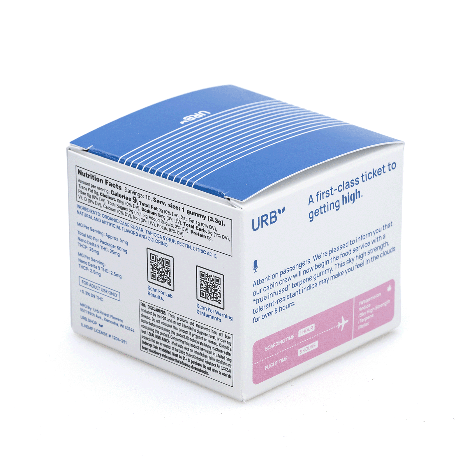 Urb elevated the gummy when they combined Delta 9 and THCP with the terpenes Linalool and Limonene. This delicious cannabis-infused gummy perfectly blends taste and potent effects. Many report strong tranquility that helps them unwind and relax through the rest of the day.