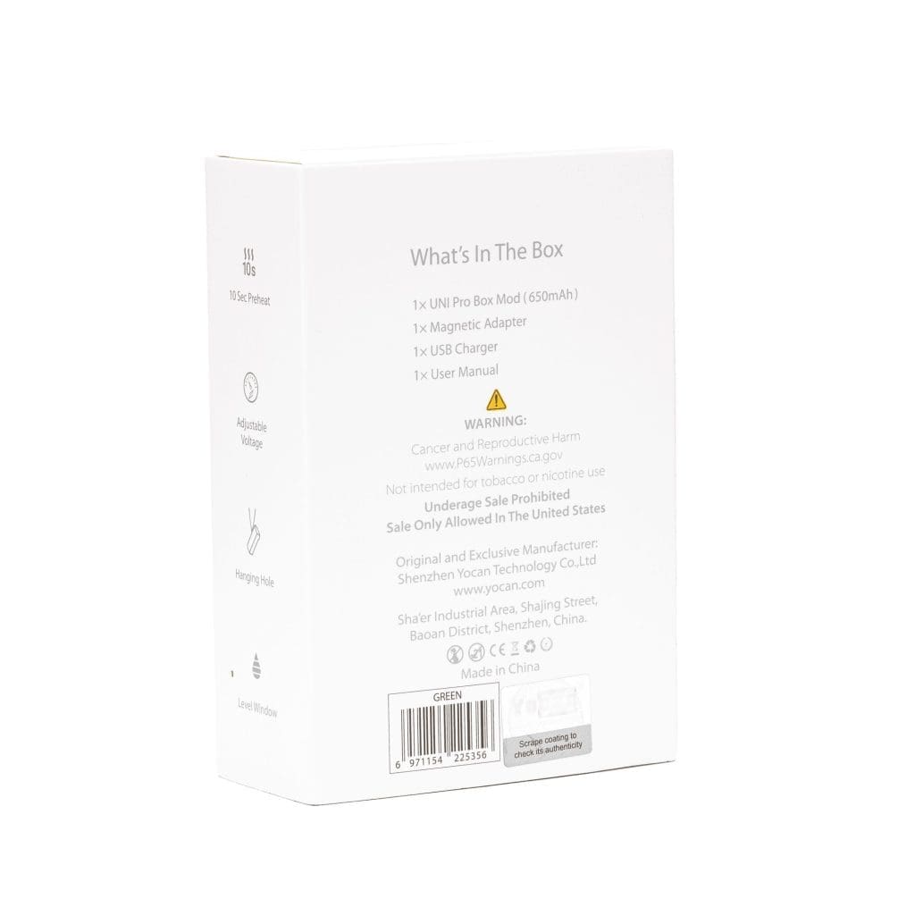 The Yocan UNI Pro Box Mod is outfitted with a 650mAh battery giving you more than enough battery power for casual vaping sessions. So, what are you waiting for? Make sure you check out the Yocan UNI Pro Box Mod now and be the first to experience professional on-the-go cartridge vaping!